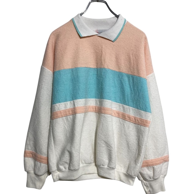 襟付き スウェット トレーナー レディース L ベビーピンク ライトブルー ホワイト 切替 裏起毛 USA製 古着卸 アメリカ仕入 a612-7173