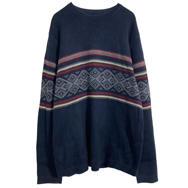 Eddie Bauer コットン ニット セーター L ネイビー レッド エディーバウアー 古着卸 アメリカ仕入 a612-5854