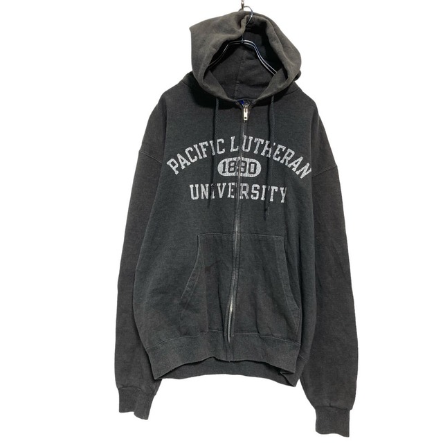 Champion ジップアップ プリントスウェット パーカー M ダークグレー チャンピオン 裏起毛 古着卸 アメリカ仕入 a607-5508