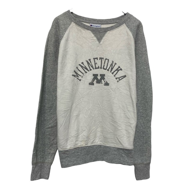 champion プリント スウェット トレーナー チャンピオン M グレー ラグラン プルオーバー 古着卸 アメリカ仕入 a609-5095