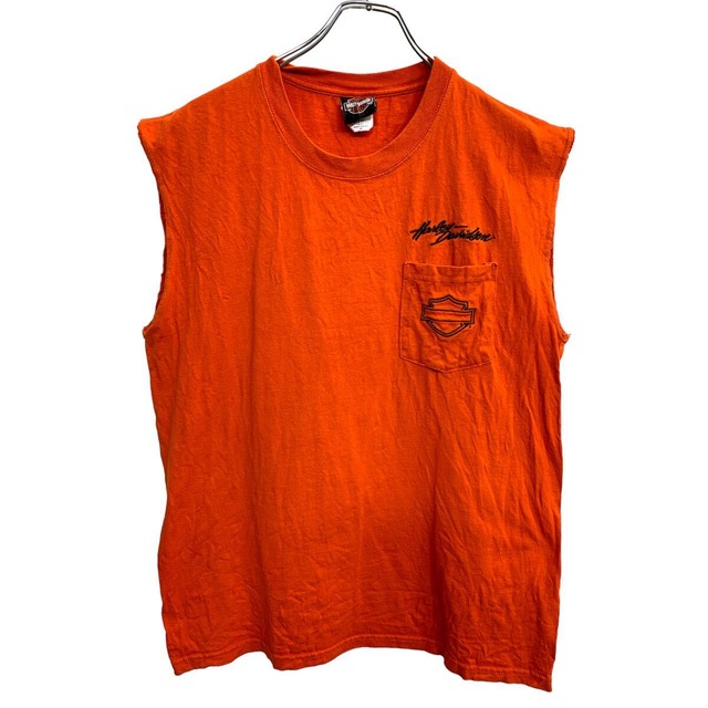 Harley-Davidson ノースリーブ シャツ エムサイズ ハーレーダビッドソン オレンジ コットン 古着卸 アメリカ仕入 t2408-3493