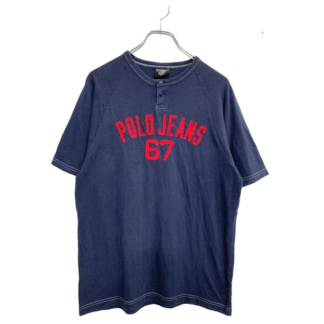 POLO RALPH LAUREN 半袖 ロゴ Tシャツ Mサイズ ポロラルフローレン ボタン コットン ネイビー 古着卸 アメリカ仕入 t2409-3446