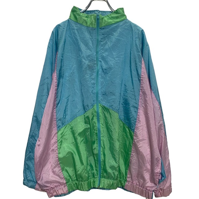 ジップアップ 切替 ナイロンジャケット M ライトブルー ピンク グリーン レトロ ポリエステル 古着卸 アメリカ仕入 a608-6853