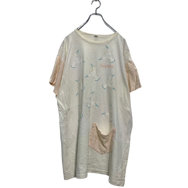 Alore 半袖 プリントTシャツ 3XL〜 レディース ホワイト サーモンピンク USA製 カモメ シングルステッチ 古着卸 アメリカ仕入 a604-5503